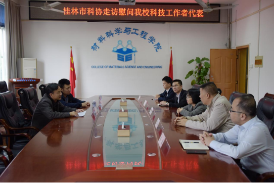 覃爱苗教授主要从事光电纳米材料的制备、表征及应用研究工作,并获得了一些可喜成果,陈雪潮详细询问覃爱苗及我校科技工作者们在科研工作及生活上有什么问题,希望覃爱苗所在我院发挥高校及学科优势,携手科协为广西科技创新多作贡献,并表示将持续优化科技工作环境,用心做好服务工作,助力科研工作者潜心科研。