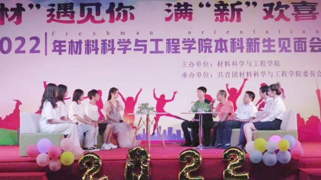 在娓娓动听的歌声中,在激情四射的街舞表演中,特别环节“我与学院书记院长面对面”访谈交流正式开始,学院领导、老生代表对3位新生代表就理想信念、学科优势、专业选择、考研就业等方面的疑惑进行了逐一解答,台上气氛融融,台下掌声不断。为让新生时刻牢记自己“桂工人”“材料人”的身份,学院党委书记、2022级创新班班主任梁军,学院在读博士、创新班副班主任何宗辉为新生献上歌曲《把根留住》,将见面会推向高潮。