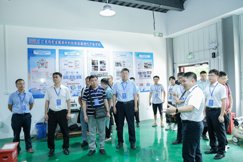 会后,与会代表分别赴广西有色金属新材料创新发展现代产业学院校内实验中心、广西光电材料与器件重点实验室进行了实地考察。