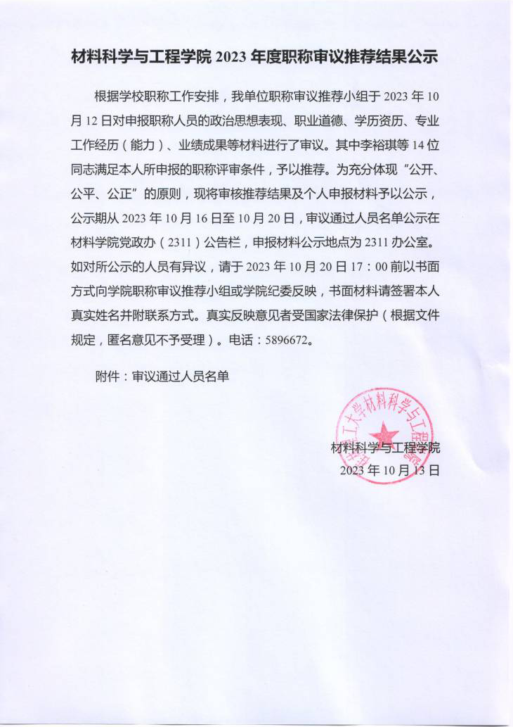yL23411永利官网登录2023年度职称审议推荐结果公示