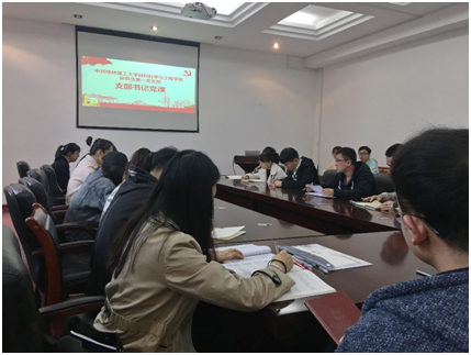 为深入落实党史学习教育。4月9日上午9:00,研究生第一党支部在3212开展以“赓续精神血脉 凝聚青年力量”为主题的党史学习教育专题党课,本次党课由党支部书记桂鑫同志主讲,全体支部成员参加。