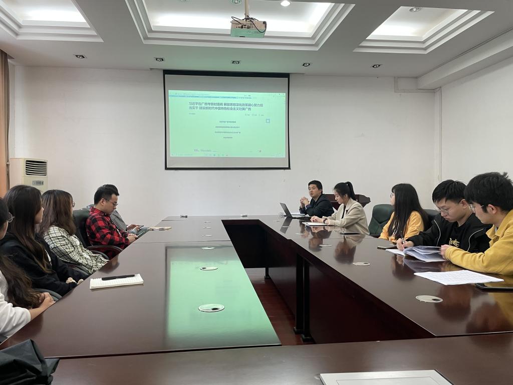 5月20日下午,学院研究生第四党支部在屏风校区教三楼212会议室组织召开学习习近平总书记考察广西时的重要讲话和重要指示精神专题会。专题会由支部书记李俊俊同志主持,支部全体党员参加会议。