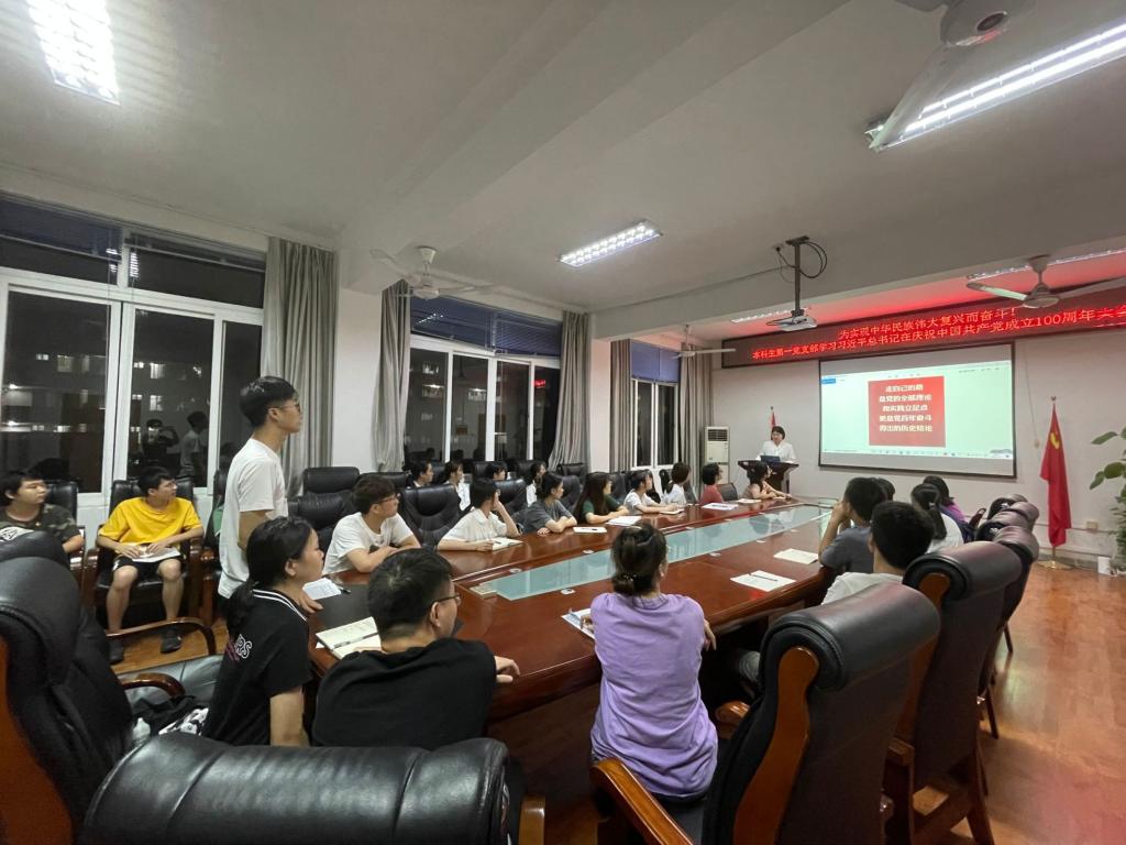 7月1日晚,我院本科生第一党支部在屏风校区2308会议室召开党员大会,专题学习习近平总书记“七一”重要讲话精神,支部书记赵思聪老师以“为实现中华民族伟大复兴而奋斗——学习习近平总书记在庆祝建党一百周年大会上的讲话”为题,从“习近平总书记讲话的重大意义和重要地位”、“习近平总书记讲话的精髓和主要内容”和“全面学习落实总书记重要讲话精神”三个方面对讲话内容和精神进行了领学,随后支部党员就讲话中的“金句”进行了朗读和心得分享,最后专题学习会在庄严的《国际歌》中落下帷幕。