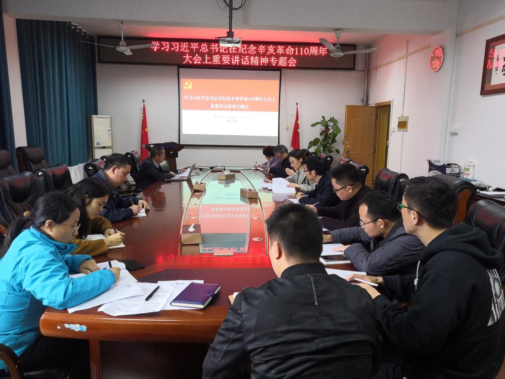 为深入学习贯彻习近平新时代中国特色社会主义思想缅怀孙中山先生等革命先驱的历史功勋,学习和弘扬他们为振兴中华而矢志不渝的崇高精神,激励和团结全院师生为实现中华民族伟大复兴而共同奋斗。10月21日下午,学院在2308会议室组织召开学习习近平总书记在纪念辛亥革命110周年大会上重要讲话精神专题会,专题会由学院党委书记梁军同志主持,学院党委委员、支部书记和院办主任参会。