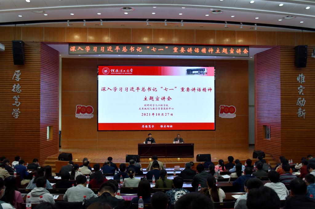 为深入学习贯彻习近平总书记“七一”重要讲话精神,了解讲话的重大意义、主要内容、丰富内涵和根本要求,不断坚定马克思主义信仰、中国特色社会主义信念和实现中华民族伟大复兴中国梦的信心。10月27日下午,学校党委副书记、校长解庆林同志在屏风校区图书馆报告厅为学院和学校发展规划与教学质量监控中心241名党员师生作了题为《以史为鉴、开创未来,夺取全面建成社会主义现代化强国新胜利——深入学习习近平总书记“七一”重要讲话精神》的专题宣讲。宣讲会由学院党委书记梁军同志主持。