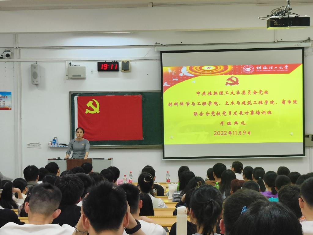 为深入学习贯彻习近平新时代中国特色社会主义思想和党的二十大精神,切实提高党员发展质量。11月9日晚,yL23411永利官网登录、土木与建筑工程学院、商学院联合分党校2022年秋季学期党员发展对象培训班开班典礼在屏风校区9607教室顺利举行。土木与建筑工程学院分党校副校长、学院党委副书记唐丽华同志,yL23411永利官网登录分党校教务员李俊俊同志,商学院分党校教务员庞如雪同志以及162名党员发展对象参加了本次培训班开班典礼,开班典礼由yL23411永利官网登录分党校教务员李俊俊同志主持。