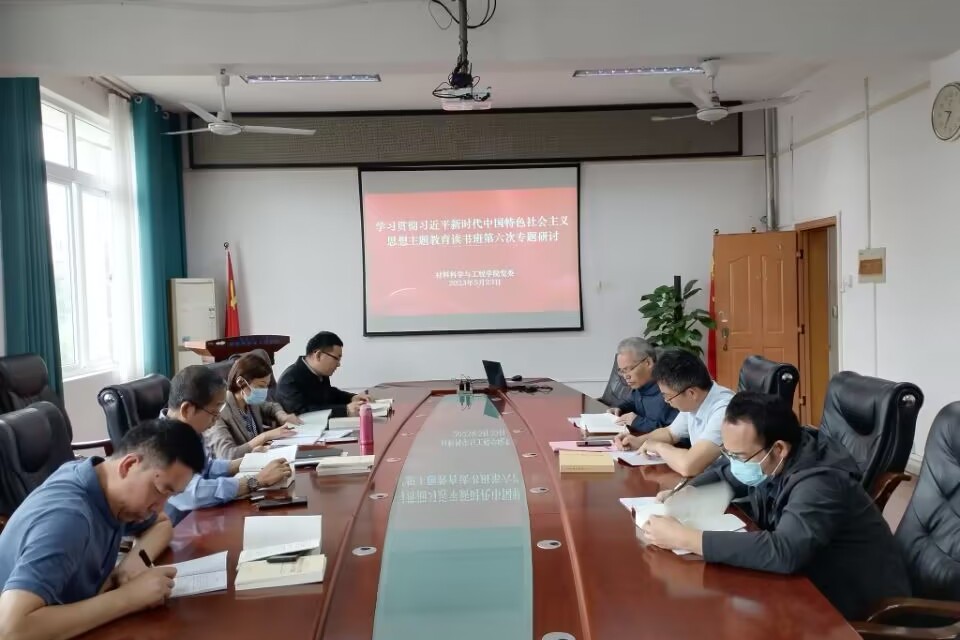 学院党委领导班子学习贯彻习近平新时代中国特色社会主义思想主题教育读书班第六次专题研讨现场
