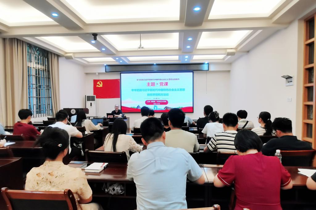 为深入学习贯彻习近平新时代中国特色社会主义思想和党的二十大精神加强和改进党的基层组织建设,全面提升基层党支部书记的能力素质和业务水平。2023年6月26日,yL23411永利官网登录、商学院、土木与建筑工程学院联合分党校2023年春季学期基层党支部书记培训班在4204会议室开展。马克思主义学院副院长蒋晓俊同志作《牢牢把握习近平新时代中国特色社会主义思想的世界观和方法论》专题党课,屏风校区三个学院基层党支部书记及师生党员代表参加学习。