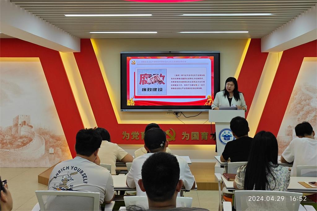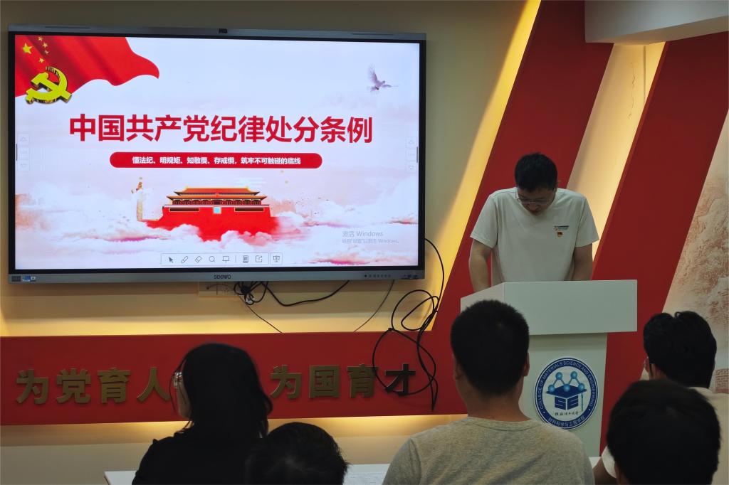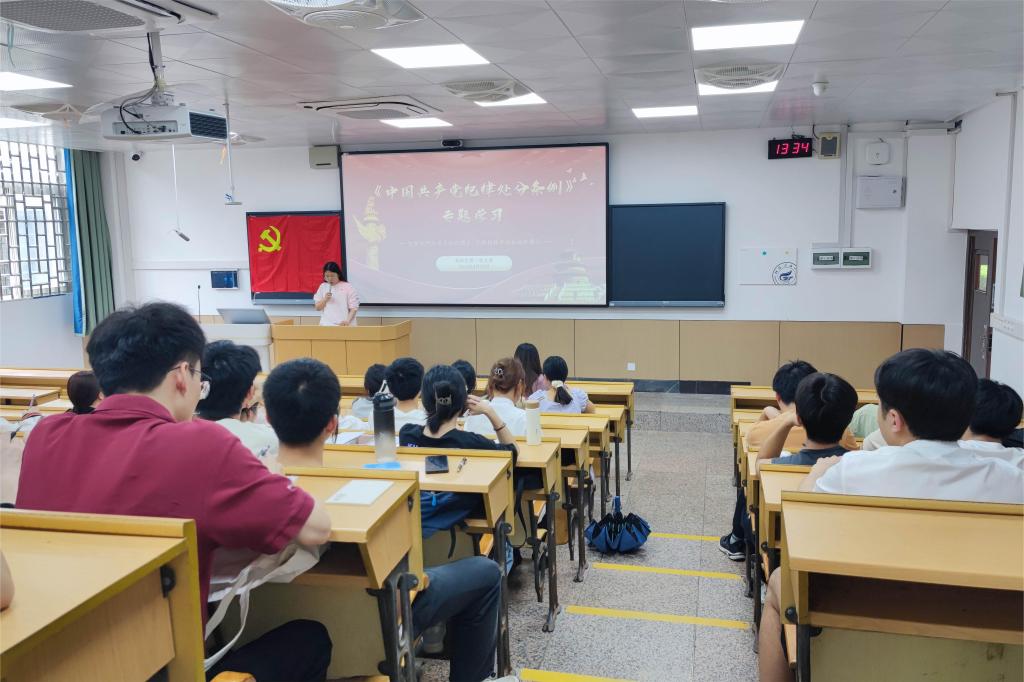 为深入学习贯彻习近平总书记关于党纪学习教育的重要讲话和重要指示精神,认真学习新修订的《中国共产党纪律处分条例》,增强党支部的政治功能和组织功能,强化师生党员纪律意识、提高党性修养,做到学纪、知纪、明纪、守纪,以严明的纪律确保全党自觉同以习近平同志为核心的党中央保持高度一致,统一思想、统一行动,知行知止、令行禁止,形成推进中国式现代化的强大动力和合力。2024年4月17日至4月30日,学院党委所属14个师生党支部接续开展党纪学习教育集中学习会。