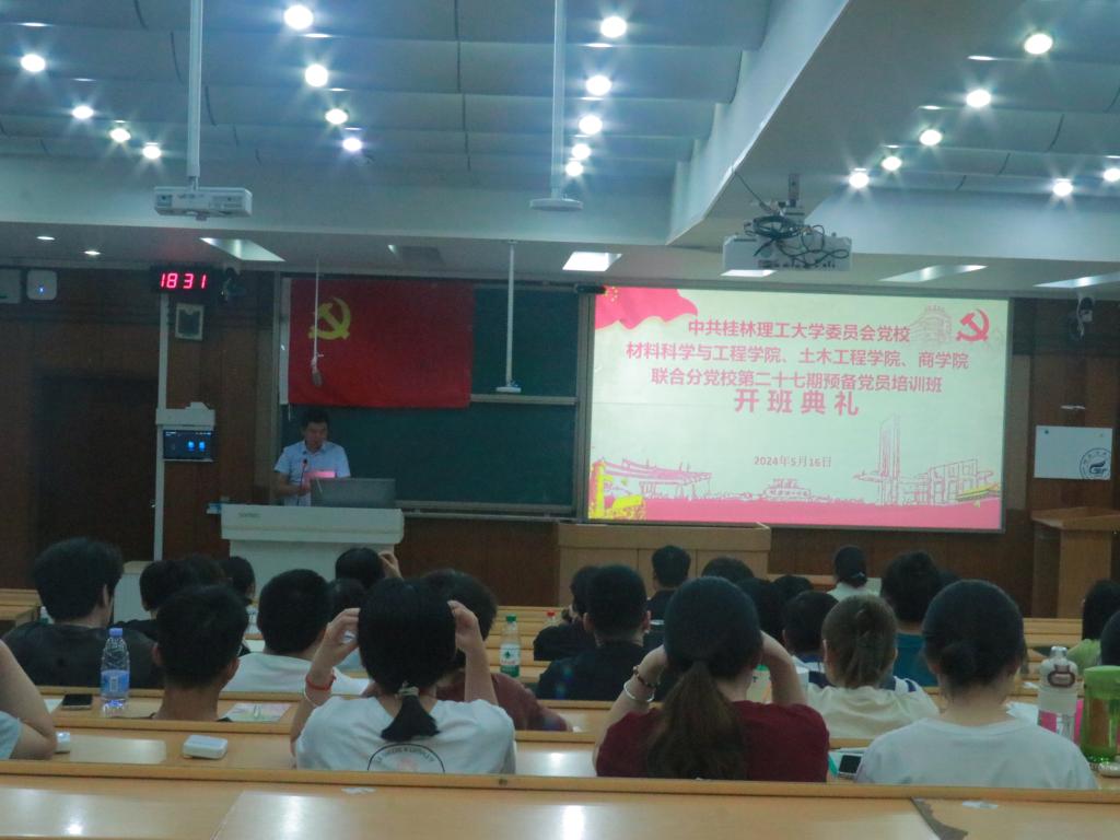 5月16日晚,yL23411永利官网登录、土木与建筑工程学院、商学院联合分党校第二十七期预备党员培训班开班典礼在屏风校区教九楼401教室隆重举行。土木工程学院副处级组织员、分党校教务员杨晓同志,商学院分党校教务员苏光耀同志以及154名预备党员出席了本次开班典礼。开班典礼由yL23411永利官网登录分党校教务员李俊俊同志主持。