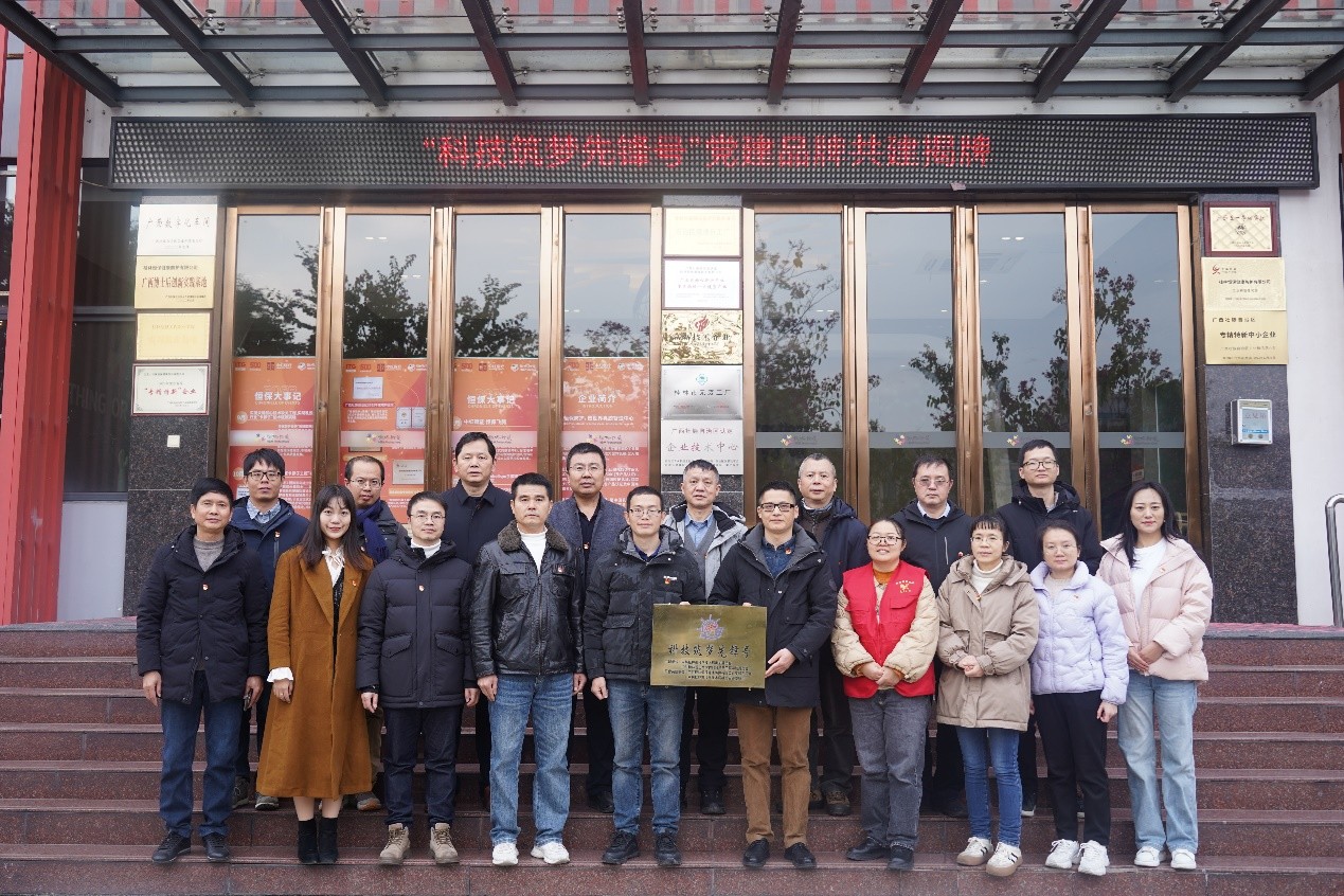 2024年12月13日下午,我院教工第二党支部、第三党支部联合桂林市科学技术局机关党支部、桂林恒保健康防护有限公司党支部,在桂林恒保健康防护有限公司开展了“科技筑梦先锋号”党建品牌共建活动。学院教工第二党支部书记李存军、第三党支部书记李裕琪,桂林市科学技术局机关党支部专职副书记,桂林恒保健康防护有限公司党支部书记李竟峰、常务副经理李国忠以及各共建党支部的部分党员同志参加了共建活动。本次活动为“科技筑梦先锋号”党建品牌共建揭牌,并围绕“推进科技筑梦、深化政产学研融合”主题进行了座谈,共同开展了党建工作研讨和技术研发合作交流。