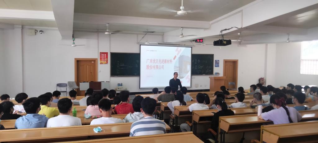 会议伊始,梁军书记以PPT形式为同学们介绍了广东优巨先进新材料股份有限公司的企业概况、人才培养、企业文化、培养力度、薪酬福利、晋升机制等方面内容,让同学们对该公司有了详细的了解。其次,梁书记针对同学们比较关注的企业基础设施、工作机制等问题做了详细的补充说明;最后的问答互动环节,同学们和梁书记积极互动,更加全面的了解了企业。