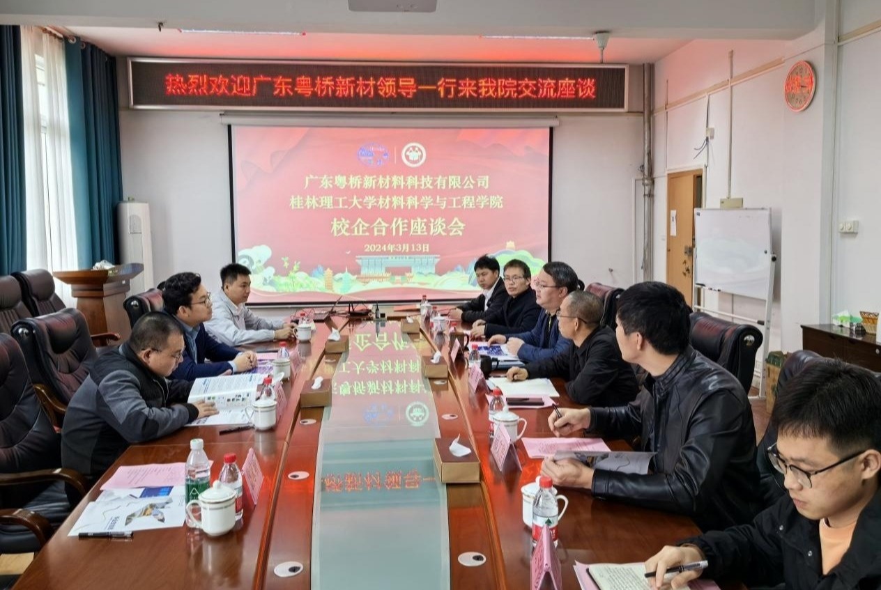 3月13日上午,广东粤桥新材料科技有限公司总裁张枝成率队来我院考察交流。学院党委书记梁军、院长周焕福、党委副书记郝文佳、副院长黄孝华,学院对口专业教师代表出席座谈会,双方将围绕产学研合作、就业工作、平台共建与共享等领域开展深度合作,并就此签署了产学研框架合作协议。