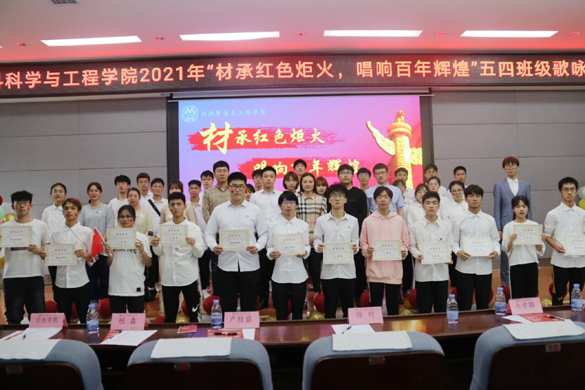 比赛在全体师生合唱团歌嘹亮的歌声中拉开了帷幕。比赛中,参赛学生精神饱满,意气风发,用歌声向我们表达了青年学子弘扬“五四”精神、勇担历史重任的决心,展现了当代学子积极向上、奋勇当先的精神风貌。在互动环节中,开展了党史知识竞答,同学们积极踊跃答题,展现了我院学子良好的精神风貌。经过激烈的角逐,最终无机19实验班、高分子19-2班、材料20-6班获得一等奖,无机18实验班、材料20创新班等五个班级获得二等奖,高分子18-1班、材料20-8班等8个班级获得三等奖,其余班级获得优胜奖,另外,比赛还评选出最佳创意、最佳指挥、最佳人气等奖项若干。