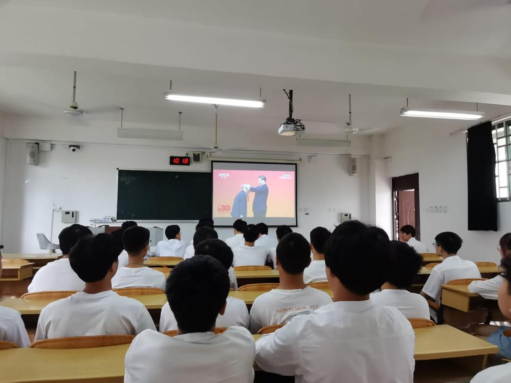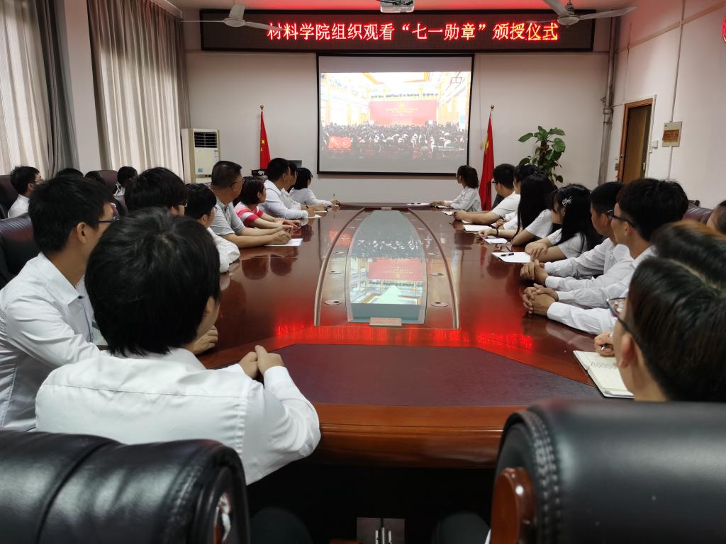 6月29日上午10点,我院分别在屏风校区2308会议室和雁山校区05203教室组织观看“七一勋章”颁授仪式并学习习近平总书记重要讲话,学院党委书记李治老师、副书记徐时老师、各年级辅导员和学生党员代表、团员代表集体观看了仪式。
