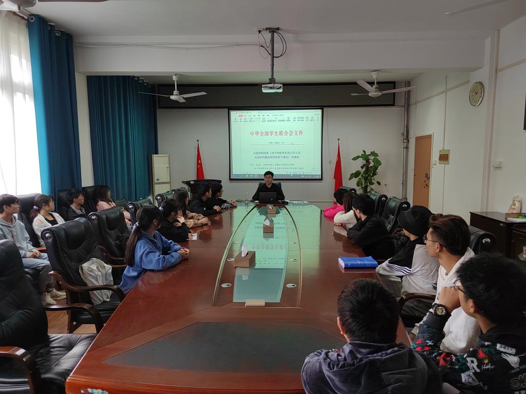 根据团区委和上级学联通知要求,严格落实学生会工作人员培训制度,2021年10月13日中午,我院在屏风校区2308会议室召开学生会组织工作人员培训会。学院团委兼职副书记卢桂盛出席本次会议,学院团委、学生会成员参加了本次会议。