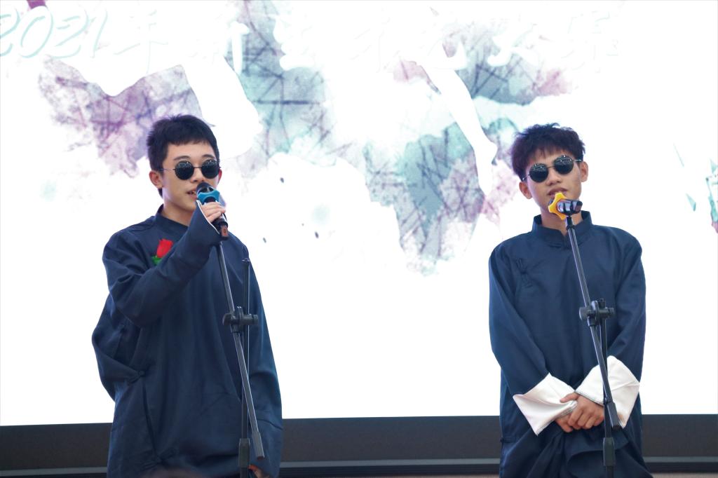 本次大赛大赛以材展青春心向党,艺起扬帆新征程为主题,充分结合今年建党百年迈入新征程的时代背景,体现了同学们青春向党的精神内涵。在主持人致开场白后,由消防车乐队的两首歌曲《披星戴月地想你》和《鹿befree》拉开了大赛的序幕,朗诵《桂工的梗》和相声《保险》令场上观众开怀大笑,舞蹈《solo》激动人心。过程中,20级助演嘉宾的歌曲及舞蹈点燃了大家的热情,将大赛氛围推向高潮。合唱《国家》婉转悠扬打动人心,比赛最后由尹贤彬老师献唱一首《水手》给大赛划上圆满的句号。经过评委老师的投票和评分,《姗姗》以高分荣获一等奖,《成都》及《父亲的散文诗》荣获二等奖,《迟迟》、《我害怕》、《老男孩》荣获三等奖,《solo》、《国家》、《桂工的梗》、《传闻》荣获优胜奖。经过线上投票,《桂工的梗》获得最佳人气奖。最后由各评委老师分别为获奖班级及选手颁奖并合影。