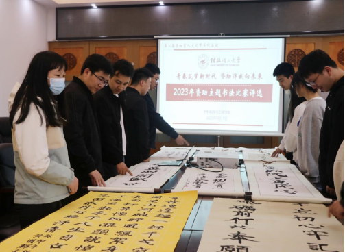 为大力宣传国家资助政策及成效,切实做好学生资助工作,讲好中国学生资助故事,激励我院广大受助学生奋发自强、立志成才、感恩回馈、报效国家,结合2023年学校“资助育人文化节”活动安排,5月12日,我院在屏风校区2304举办的“青春筑梦新时代 资助伴我向未来”资助主题书法比赛现场评选暨书法展。