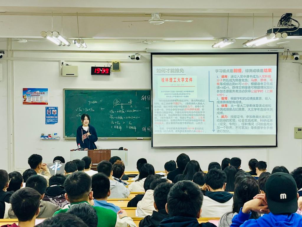 “明确自己的人生目标和方向,一步一个脚印,脚踏实地地走好每一步。”在报告会上,徐含睿紧紧围绕在资助政策的浸润下个人奋发图强,立志求学的决心,从专业学习、科研竞赛、学生活动等方面讲述自己获得国家奖学金以及推免历程,并向大家讲解普及了推免的要求以及相关流程,现场的同学们受益匪浅。在分享尾声,面对同学们的热情提问,徐含睿同学结合自身实际,向同学们强调了基础专业知识以及英语四(六)级的重要性,鼓励大家勇攀科研高峰,创造属于自己的不凡成绩。