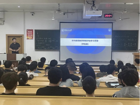 2023年5月3日晚,yL23411永利官网登录在屏风校区教九栋组织开展“本科教育教学审核评估”专题学习会,yL23411永利官网登录全体本科学生参加学习,会议由各年级辅导员主持。