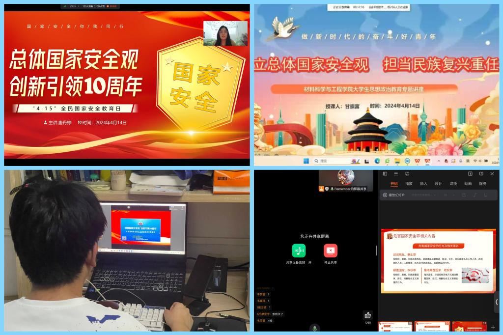 为营造良好维护国家安全氛围,4月10日-20日,我院充分利用屏风校区教二楼党建宣传阵地、教三楼重点实验室宣传阵地、学院官方网站、官方微信公众号等线上线下宣传阵地,播放保密公益宣传片《一秒钟》《保密,其实就在你我身》等宣传视频,并制作了总体国家安全观宣传海报,滚动播放国家安全教育相关知识,同时发布报道了《树立总体国家安全观,担当民族复兴重任》大学生国家安全教育课学习情况、推送国家安全教育知识竞赛相关讯息等,全面加强宣传效果,线上线下关注学习3000余人次,扎实推进师生宣传学习全覆盖。
