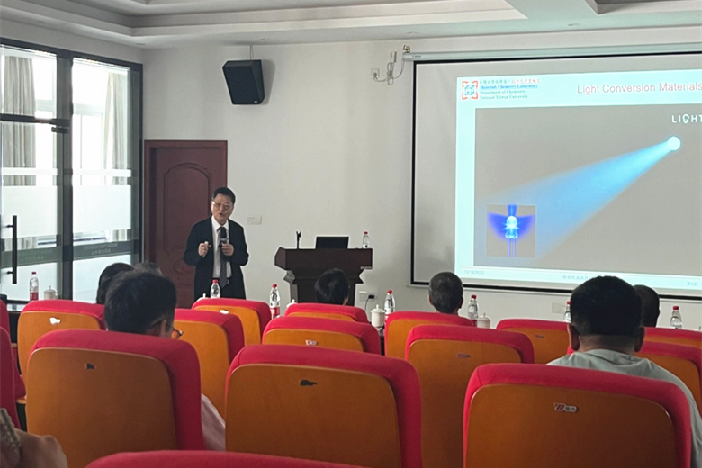 10月18日上午,台湾大学化学系特聘教授刘如熹应邀在我校协同创新中心报告厅做了精彩的学术报告,为我院师生们做了题为《新时代光转换材料》的专题报告,我院师生积极参加了此次报告会。在报告中,刘如熹教授分为“光转换光”、“光转换电”、“光转换热”三个方面深入浅出的介绍了光转换材料的发展历程。刘如熹教授团队通过调控合成配比和形貌,成功的研制出多种应用于显示与感测之发光二极管用荧光粉或量子点,解决了LED芯片“蓝光、白光”发光难的问题,其相关成果也发表在高水平期刊上,并且成功应用于LED灯中。刘如熹教授还介绍了全固态锂离子电池、金属空气电池以及光转换热应用于生物医学的纳米材料的相关开创性工作,其中某些成果申请了相关专利并进行产业应用。报告会后,师生们对报告内容产生了极大的兴趣,并与刘如熹教授进行了积极交流。