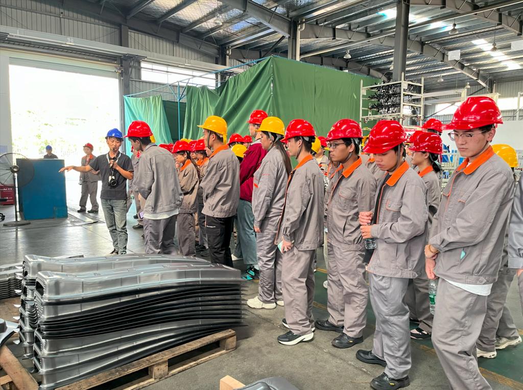此次实习的企业在行业内都有较强的技术积累和产品竞争力,对同学们而言是一次难得的学习机会。在桂林金格同学们了解了广泛应用于工业民用传统领域和轨道交通、新能源汽车、光伏发电、5G通讯等新兴应用领域的低压银基电触头、真空铜铬电触头、高压铜钨电触头和干式不饱和聚酯模塑料等断路器、接触器、继电器开关电器核心关键部件产品的生产工艺流程;在广西艾盛和广西贝驰,同学们参观了包括产品研发、生产制造、质量检测等汽车制造各关键环节,近距离观摩大规格面板冲压、机器人焊接作业和汽车零部件组装过程,加深了对汽车制造工艺流程、生产设备以及质量控制等方面的了解。