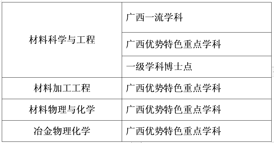 学科发展面向国家新材料发展战略、服务广西千亿元产业和新材料产业,经过多年的发展,在国内同类学科中具有较高的知名度,成为服务和支撑国家和广西经济社会发展的重要人才培养和科研基地。