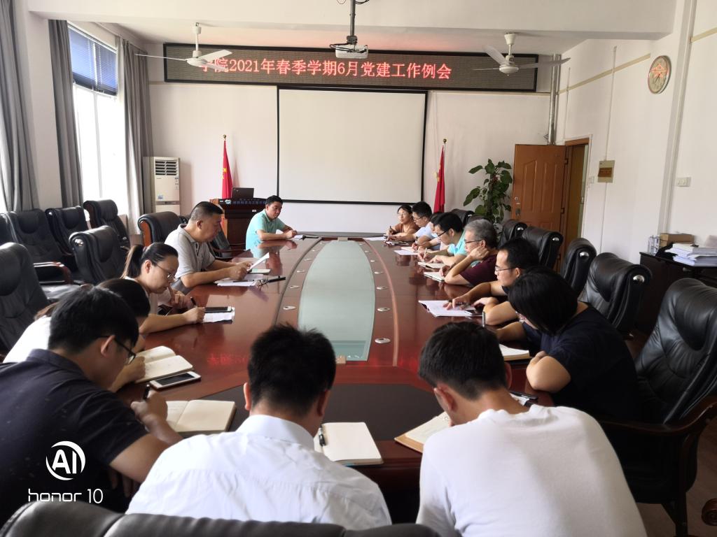 【党建月例会】学院召开2021年春季学期6月党建工作例会6月25日下午,学院在2308会议室召开2021年春季学期6月党建工作例会。学院党委书记李治同志主持会议,学院党委委员、师生支部书记参加会议。会上,李治同志传达了学校6月党建工作例会内容,就学院近期党建工作进行了部署,并着重强调了党史学习教育专题组织生活会、第二批基层党建工作品牌项目创建培育、“八桂先锋”优秀作品(课件)征集和评选等工作要求。李治同志强调,党史学习教育要注重融入日常、抓在经常,不断丰富党史学...2021-06-25