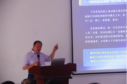 中铝广西有色稀土开发有限公司李兵党委书记、董事长一行应邀到我院做学术报告2022年5月26日下午,中铝广西有色稀土开发有限公司李兵党委书记、董事长、张亮玖生产部主管应邀到我院作学术报告,在我校屏风校区协同创新三楼会议室分别作了题为“全球稀土格局重构与中国稀土集团成立后的广西稀土发展思路”、 “稀土及应用”的学术报告,报告由学院院长龙飞教授主持,我院相关师生参加了此次报告会。党委书记、董事长李兵主要围绕中美贸易战及疫情下的世界稀土格局重塑、中国稀土集团的成立及其意义等多方面...2022-05-27