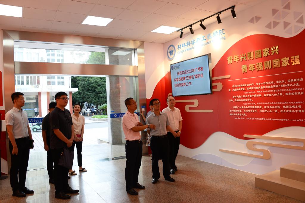 自治区党委教育工委调研组到我院巡查指导全国党建工作样板支部创建培育情况8月26日下午, 教育工委黄中阳部长到我院现场巡查指导全国党建工作样板支部创建培育情况,学校党委常委、组织部部长唐壮东,学院党委书记梁军陪同巡查。黄中阳部长参观了学院党建文化、清廉文化和校园文化的宣传阵地,听取了我院推进全国党建工作样板支部创建培育的基本情况。黄部长对我院样板支部建设情况给予了高度评价,认为思路清新、目标明确、举措有效。同时,他也指出:全国样板支部的创建培育是一项长期而艰巨的任务,...2022-08-26