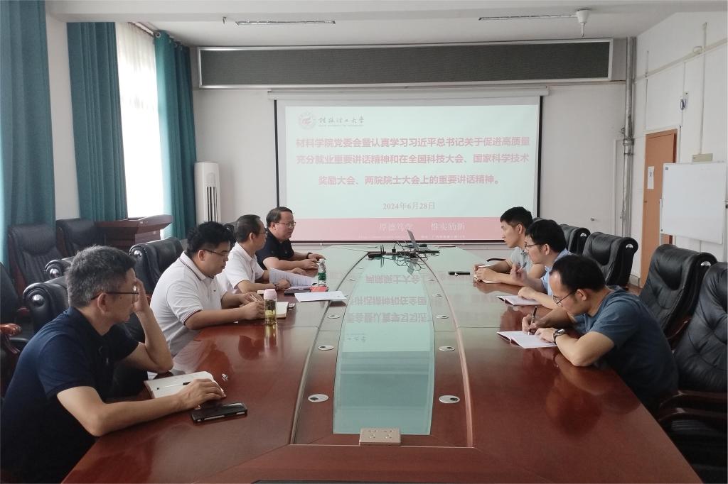 【党委会】我院党委召开会议认真学习习近平总书记关于促进高质量充分就业重要讲话精神和在全国科技大会、国家科学技术奖励大会、两院院士大会上的重要讲话精神6月28日下午,学院党委召开会议,认真学习习近平总书记关于促进高质量充分就业重要讲话精神和在全国科技大会、国家科学技术奖励大会、两院院士大会上的重要讲话精神,研究高质量就业、高级别人才培养、科教团队建设等具体举措。学院党委书记梁军主持会议。学院党委委员参加会议。会上,梁军同志传达了习近平总书记关于促进高质量充分就业重要讲话精神和在全国科技大会、国家科学技术奖励大会、两院院士大会上的重要讲话精神。梁...2024-06-28