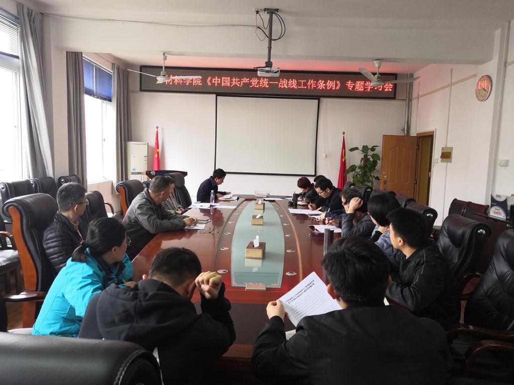 【党委中心组】学院召开《中国共产党统一战线工作条例》专题学习会为深入学习贯彻习近平总书记关于加强和改进统一战线工作的重要思想。4月6日下午,学院在2308会议室召开党委中心组(扩大)学习会,会议主题是学习贯彻《中国共产党统一战线工作条例》(以下简称《条例》)。会议由学院党委书记李治同志主持,全体党委委员、支部书记和院办主任参加。会上,学院党委统战委员王茗同志领学了《条例》。他指出,《条例》是统一战线领域的基础主干党内法规,是新时代统一战线工作的基本遵循。大家要...2021-04-07